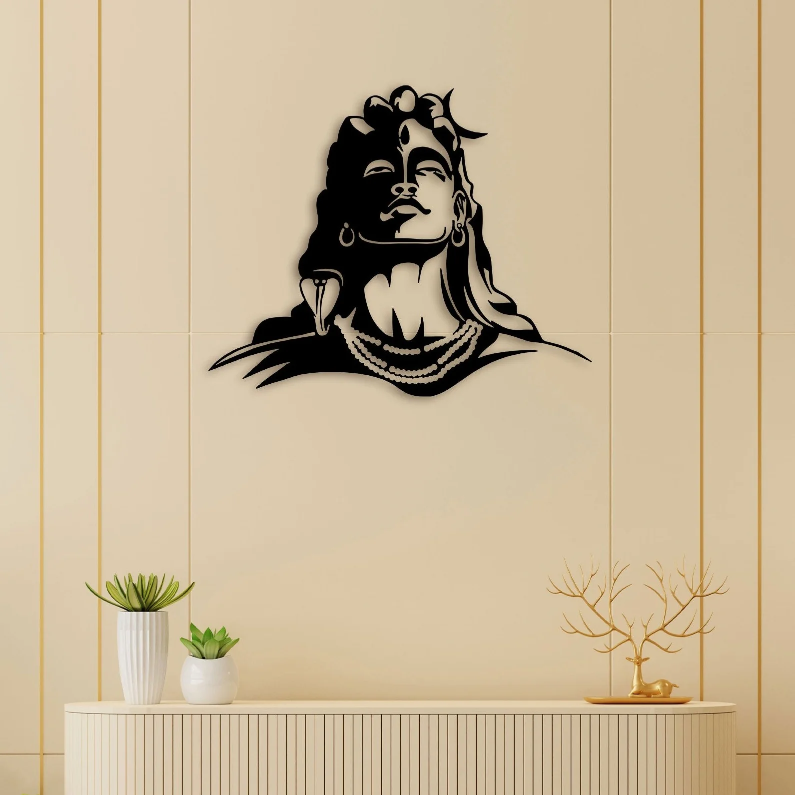 Our Lord Shiva Metal Wall Art is designed from 1 mm high-quality metal steel, painted with powder coating provide us rich experience. Finishing with a black Pulver gives extra life for wall art. Hang once at your room and turn back how stylish your living room.
